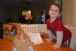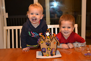 Tonight while we waited for Daddy to come home late from work we decorated our Haunted House.